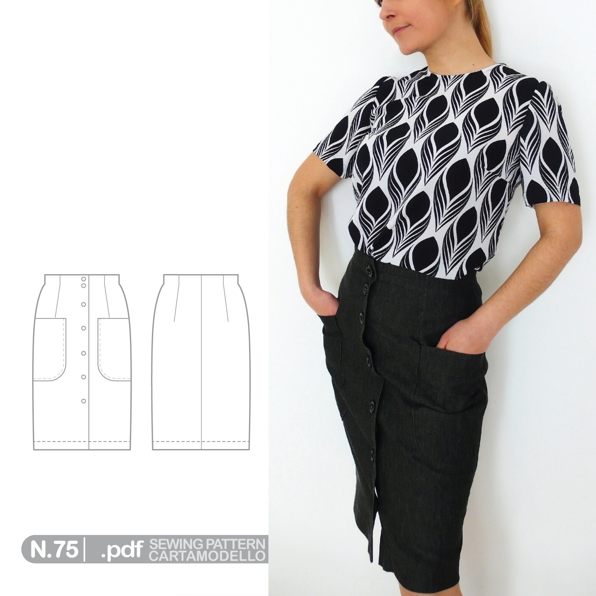 Skirt With Buttons Sewing Pattern Women Skirt Easy Sewing Etsy